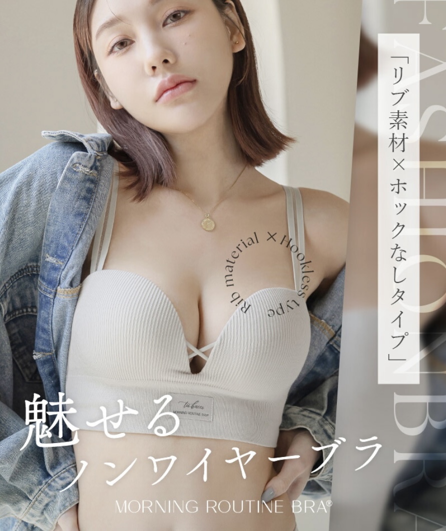モーニングルーティンブラは、カップの形状に工夫があり、ワイヤーなしでも自然にバストを寄せてくれます。
