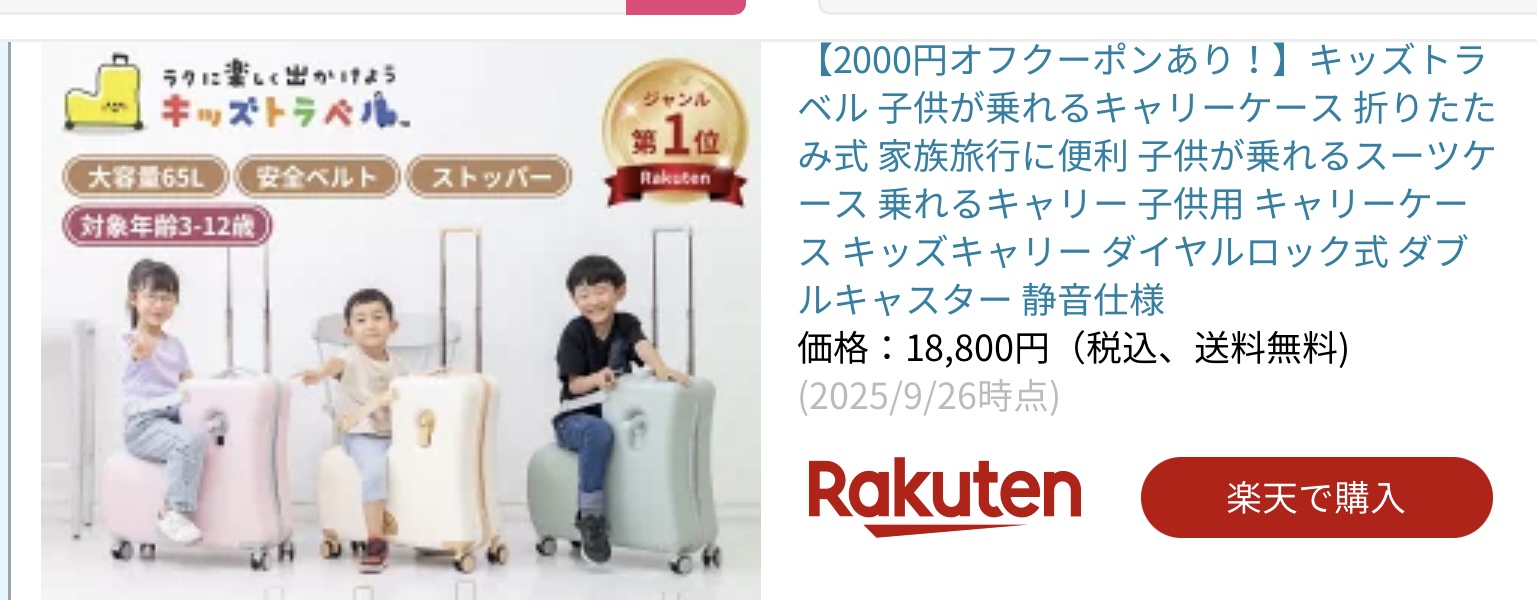 👉 【楽天で見る】子どもが乗れるキャリーケースはこちら